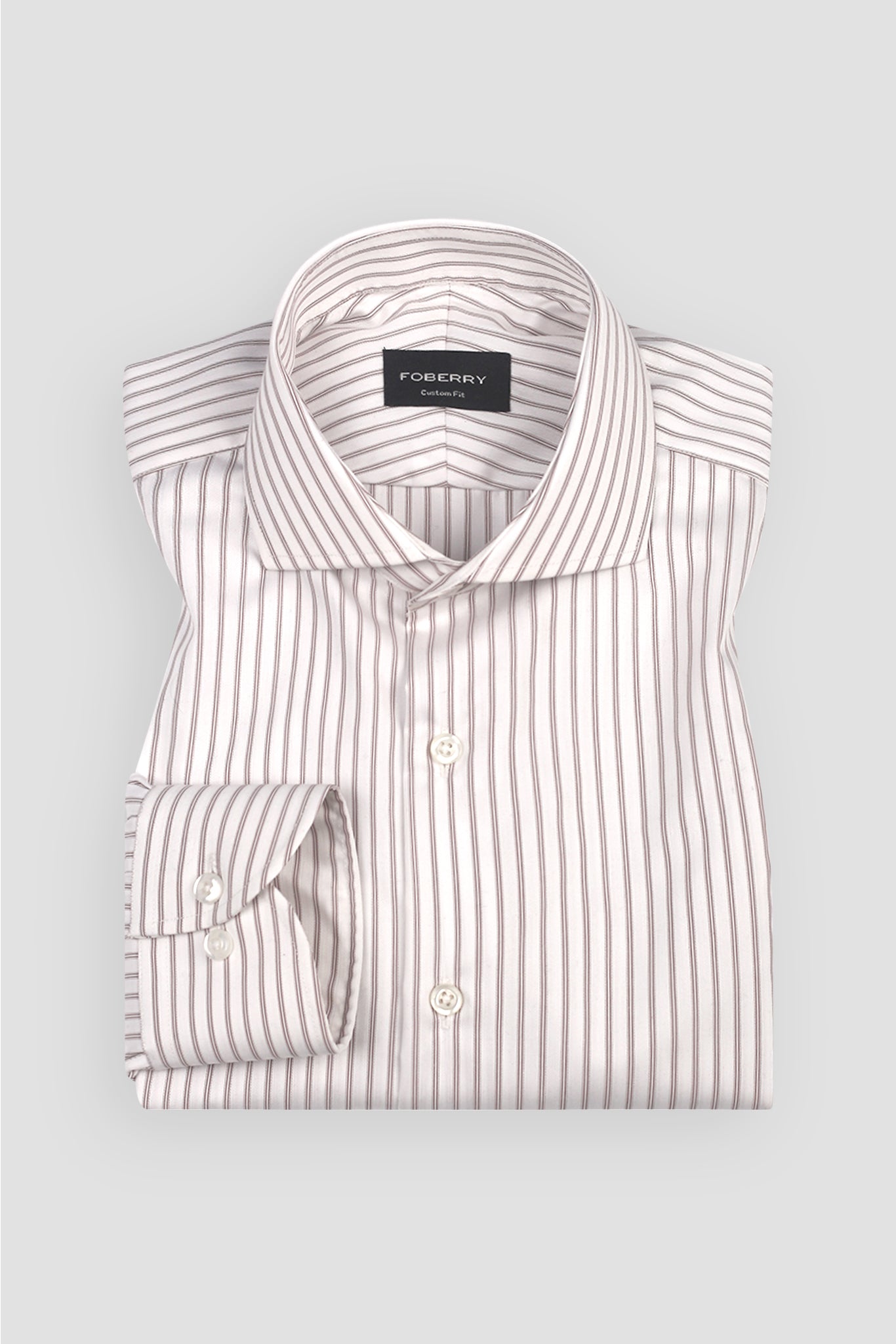 Sophisticated, sharp, and effortlessly stylish — the Dual Egyptian Brown Striped Shirt – Easy Care redefines modern refinement. Its dual brown stripes create a bold yet classic rhythm, perfect for those who appreciate understated power dressing. The cut-away extreme collar adds a contemporary edge, framing the face beautifully whether worn with or without a tie.