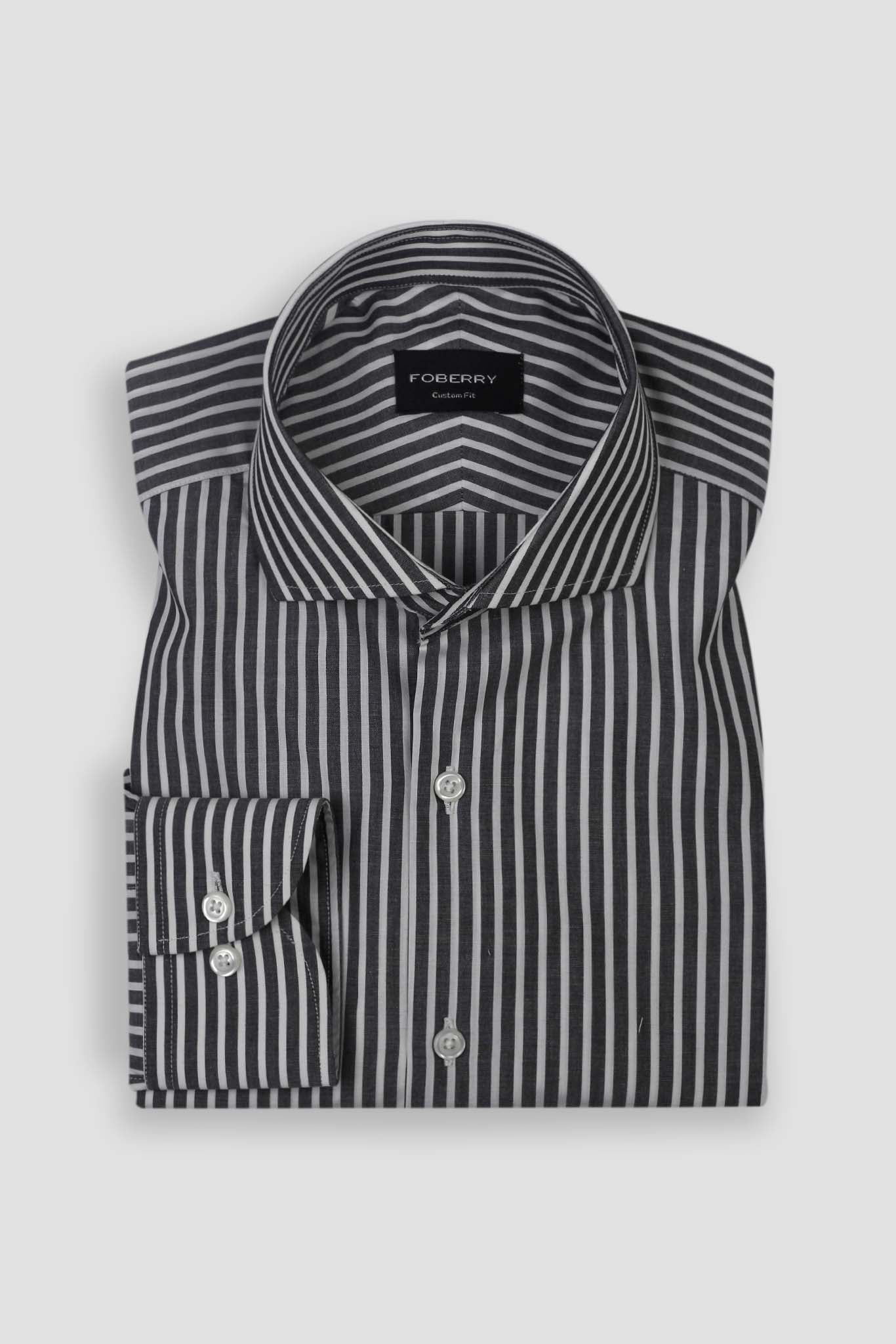 Understated. Sleek. Confident. The Soft Charcoal Bengal Stripe Shirt captures the essence of refined sophistication with its clean vertical stripes and contemporary silhouette. The deep charcoal hue delivers quiet strength, while the fine Bengal stripes introduce a touch of classic tailoring — perfect for men who appreciate elegance with attitude.