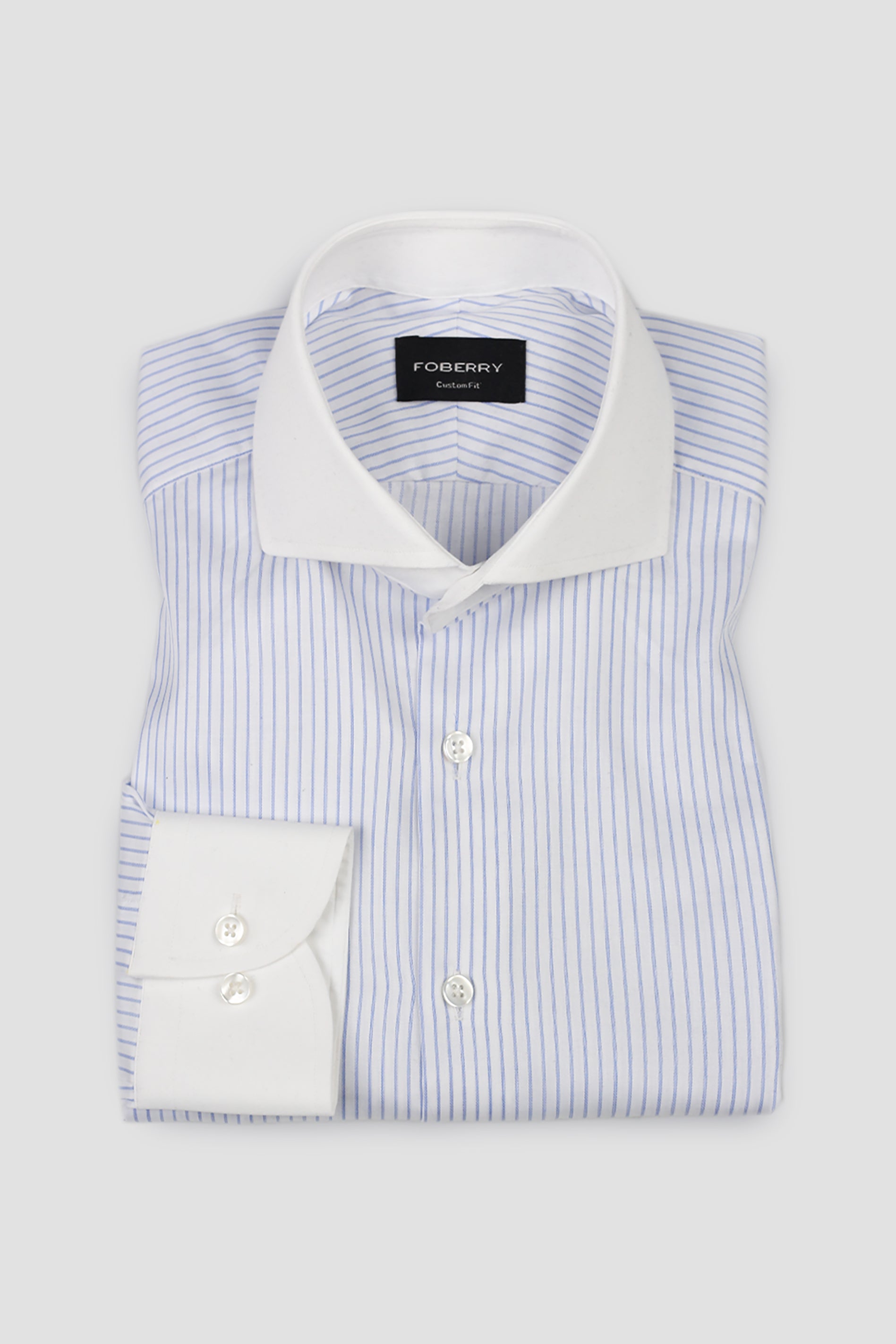 Sky Blue 60s Pencil Stripes Shirt - Easy Care
