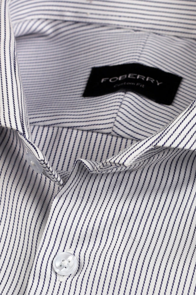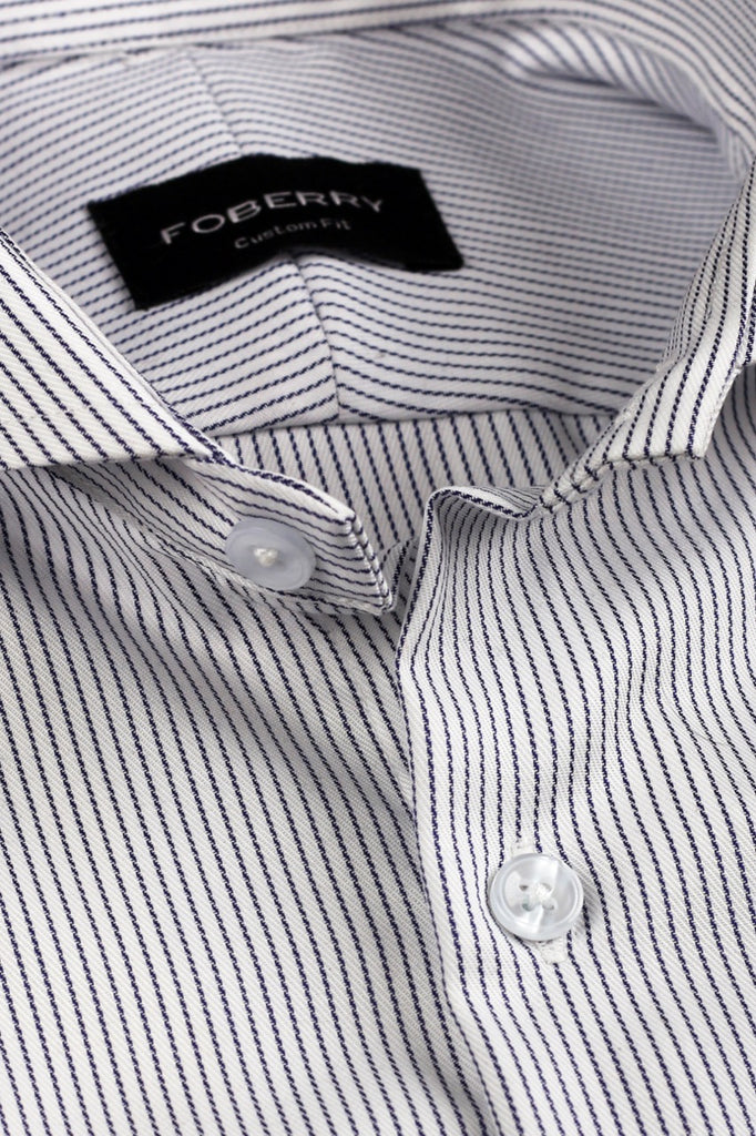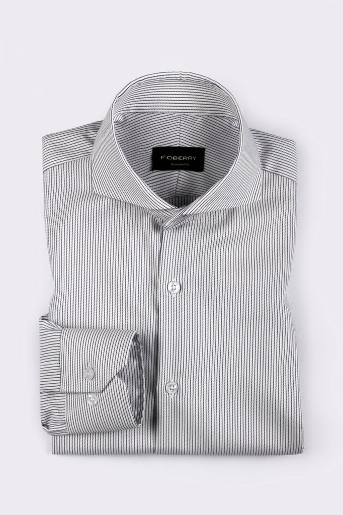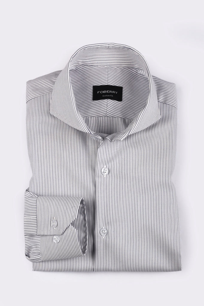 Premium cotton fabric having amazing chained pinstripes complement the warp and weft of the fabric. Premium cotton stitched in the cut-away extreme collar to exude modernity with class. Stitched in a cut-away extreme collar to make your attire irresistible.