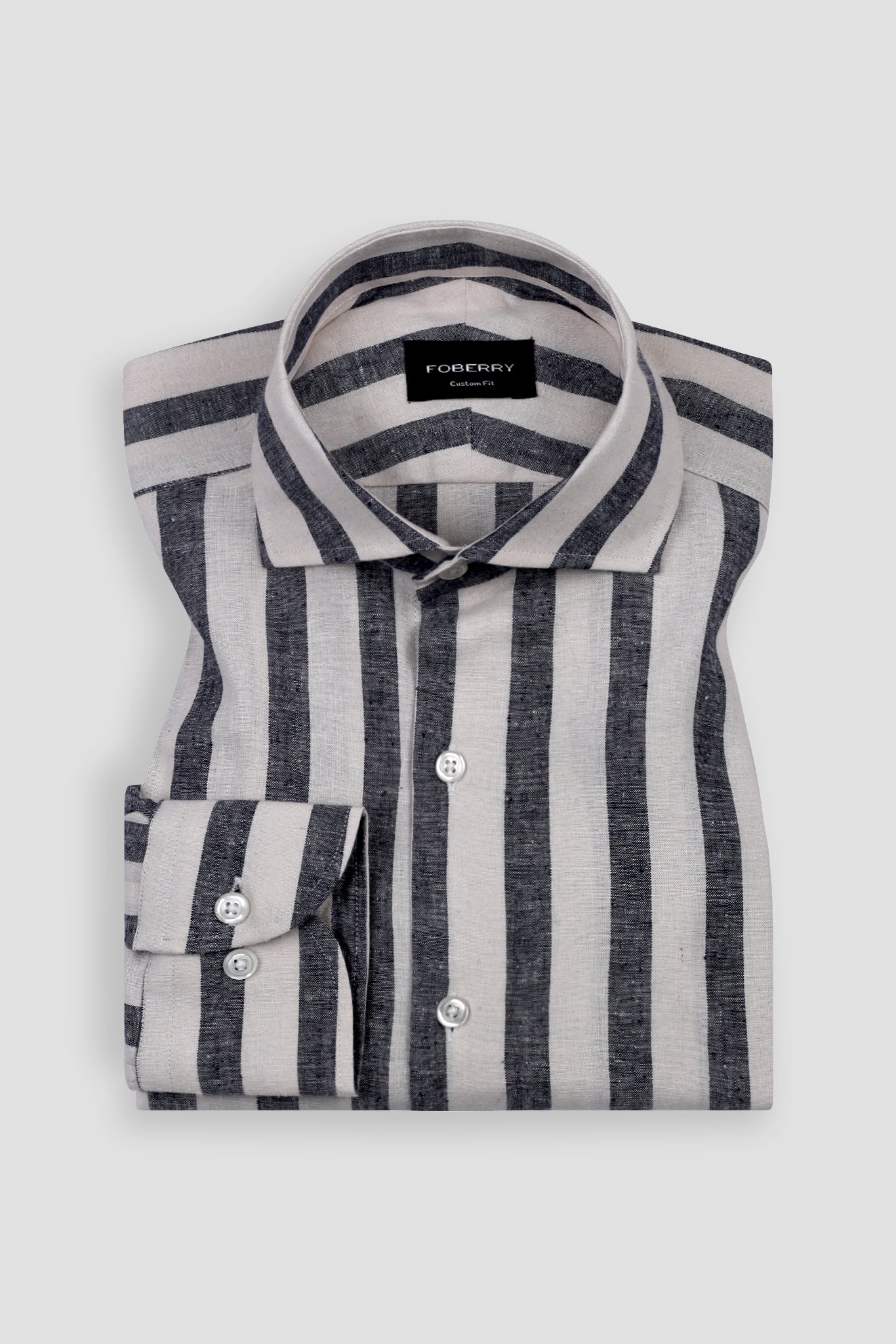 Confident, versatile, and timeless — the Bold Charcoal Cotton Linen Striped Shirt redefines understated luxury for the modern gentleman. Its deep charcoal hue paired with subtle woven stripes delivers a look that’s effortlessly sharp yet relaxed enough for everyday sophistication.