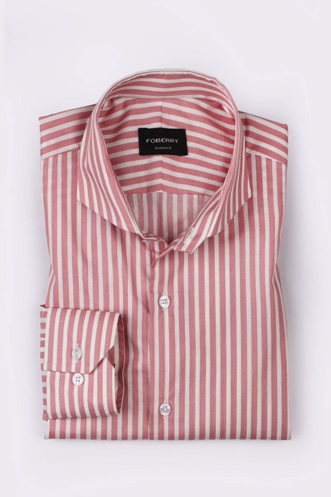 Planning to have something that shows your impeccable taste for both formal and informal wear, then you must be looking for our Pale Red Awning Striped Shirt. Soft, smooth, and durable Egyptian Cotton stitched-in cut-away extreme collar to make a bold style statement.